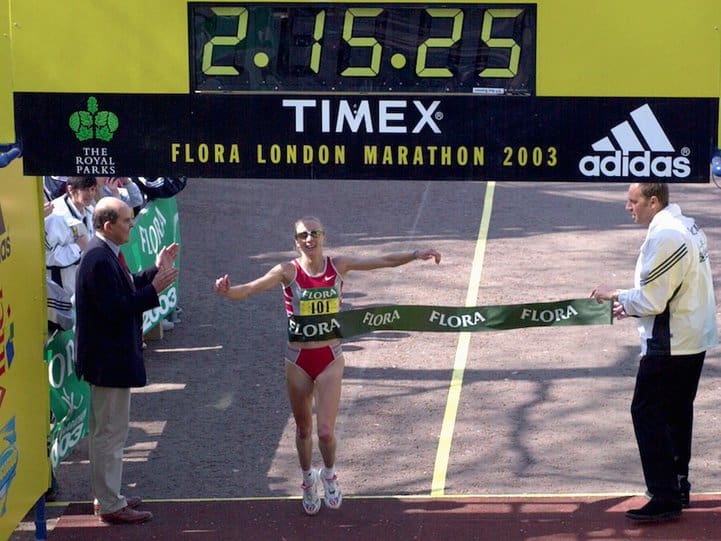 With a long-term goal of the Athens marathon in 2004, Radcliffe ran her first marathon in London in 2002. Her debut was brilliant, with Racliffe beating the course record with a win in 2.18.56. She then broke the world record (2.17.18) in Chicago later in the year. Next year, she produced a run almost beyond belief.
