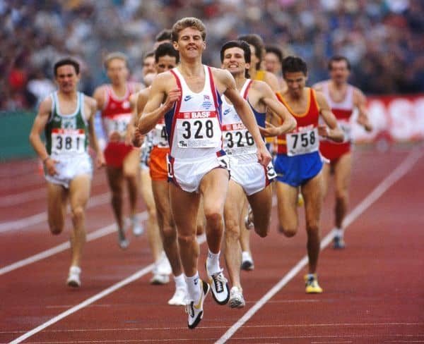 Cram’s 1988 campaign was going incredibly well with a string of pre-Olympic performances that were amongst his best ever. By September, he had perhaps over-raced. He sustained another calf injury in Rieti during a 1000m race and lost crucial pre-Olympic training and was off his game coming into the Olympics in Seoul in late September. He bombed out of the 800m in the second round and looked flat in the 1500m final, struggling home for 4th, behind surprise winner Peter Rono (KEN), countryman Peter Elliott and Jens-Peter Herold (GDR).