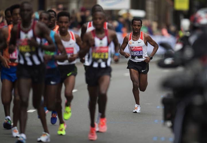 Bekele later explained that he was experiencing problems with blisters, setting off a debate as many thought he was running in the same Nike super-shoes that will be worn in next weekend’s sub-2hr ‘attempt’. Not so, apparently: a statement from Nike later clarified Bekele raced in the same model as when he had run 2:03:03 in Berlin last year.