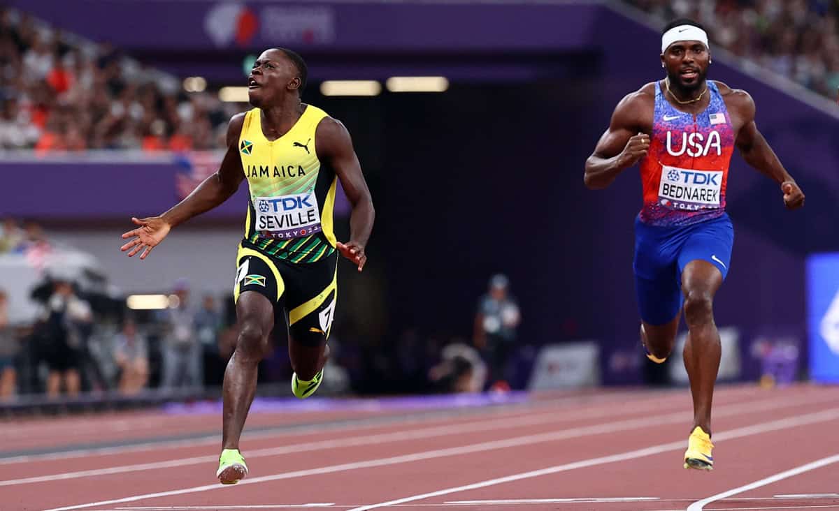 But their battle was for the silver medal. Oblique Seville, the only medalist to run a personal best, was half a metre across the line when the Paris gold and silver medalists reached it. With Jamaican sprint royalty in Usain Bolt looking on, Seville and Thompson restored the Caribbean nation to the top of world sprinting – for this night anyway.