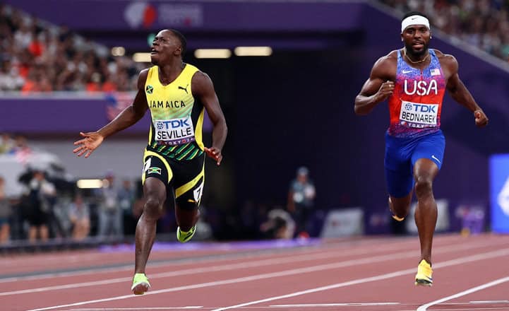 It was a session for straight line action. Immediately before Lyles v Thompson II, Melissa Jefferson-Wooden underscored her own dominance of 2025 with a championship record 10.61 victory in the women’s race ahead of Jamaica’s Tina Clayton and Olympic champion Julien Alfred. Clayton matched Seville in being the only one of the medalists to run a PB, but not, alas, in winning the race.