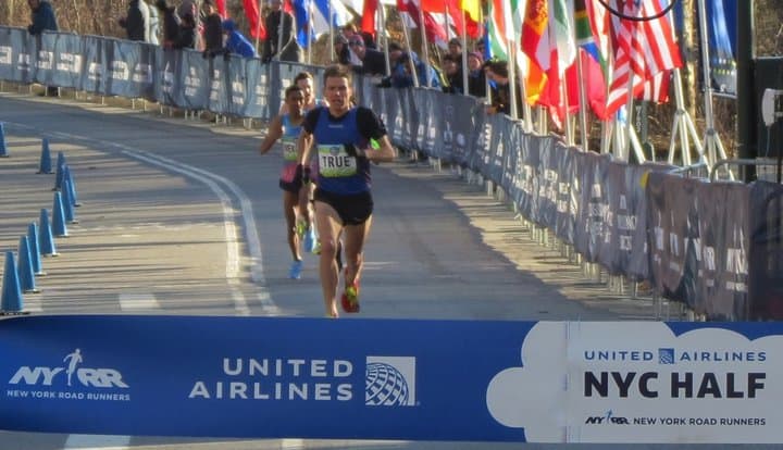“Knowing that most of the field are marathoners or at least had done the half many times before, I knew that I probably had a little bit more closing speed than them,” said True, who has had considerable success in New York City in recent years, winning the Diamond League 5000 meters at Icahn Stadium and UAE Healthy Kidney 10-K in Central Park in 2015 and the NYRR Millrose Games 2-mile at the Armory in 2017. “My goal was just to hide for the majority of the race and then just get dragged for 2-0K, and then hopefully that last [kilometer] I was able to use my speed to get around people.”