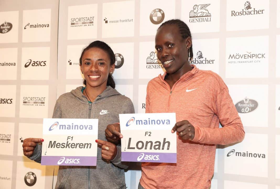 The 2:20 barrier is the major target at the Mainova Frankfurt Marathon on Sunday. No woman has achieved this time in Germany’s oldest city marathon and so far in Germany only Berlin has achieved this distinction. Given good weather conditions, a group of women are aiming to break 2:20 on Sunday. Meskerem Assefa, who clocked the current course record of 2:20:36 last year, returns to defend her title. The Ethiopian is not the fastest on the start list since Lonah Salpeter of Israel has made a late entry and her personal best stands at 2:19:46. The men’s race will see a unique clash of the world junior record holder versus the world masters record holder: Tsegaye Mekonnen of Ethiopia against Kenya’s Mark Kiptoo. Sunday’s race will also have major significance for the many runners aiming for the Olympic qualifying times of 2:11:30 and 2:29:30 respectively on Frankfurt’s traditionally fast course.