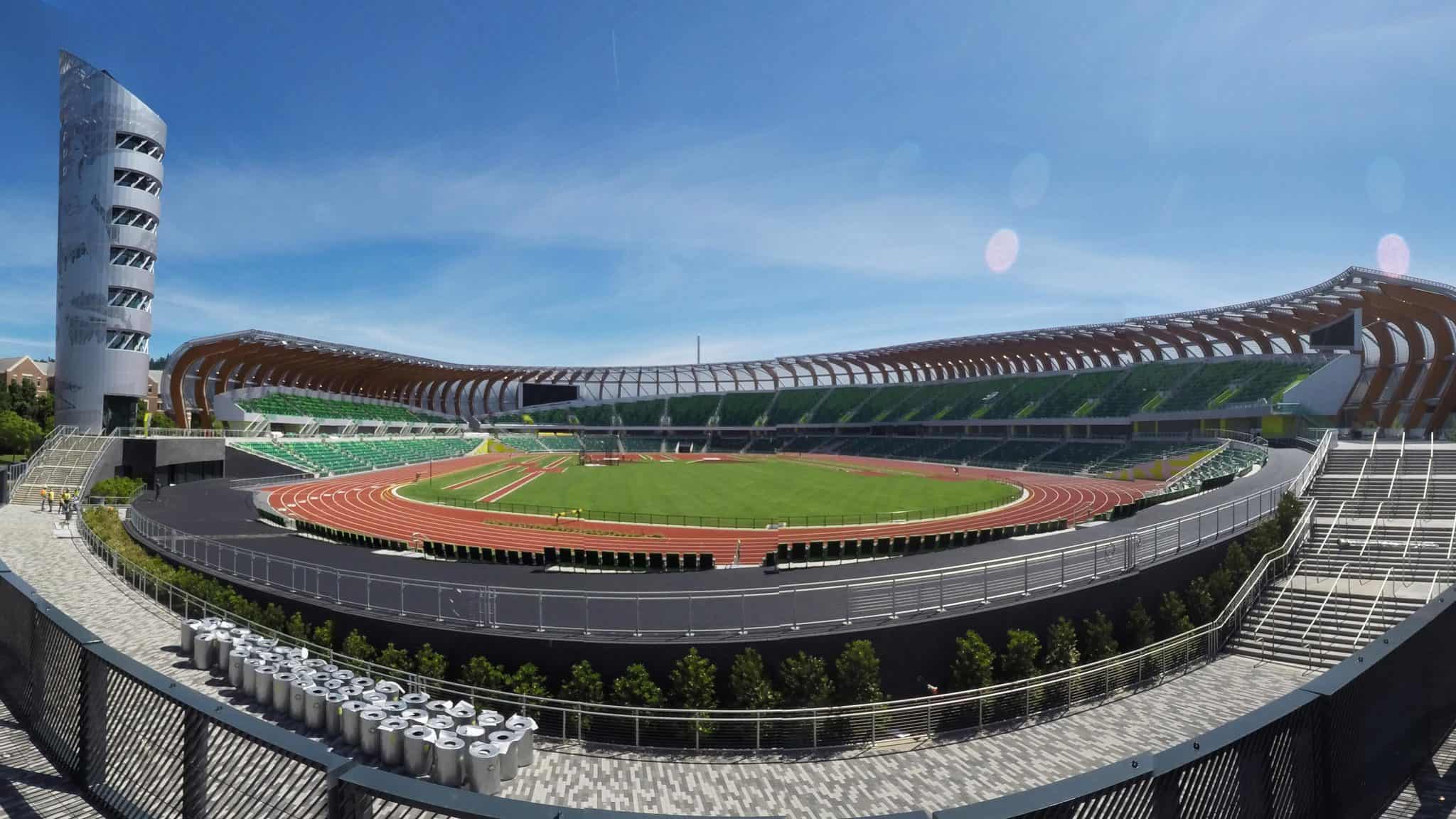 The University of Oregon track and field program is prestigious and famous and is funded signficantly by Nike. The university’s Hayward Field, perhaps the most famous track in the world, and home to next year’s World Outdoor Championships, was largedly funded with donations from Phil Knight, the founder of Nike.