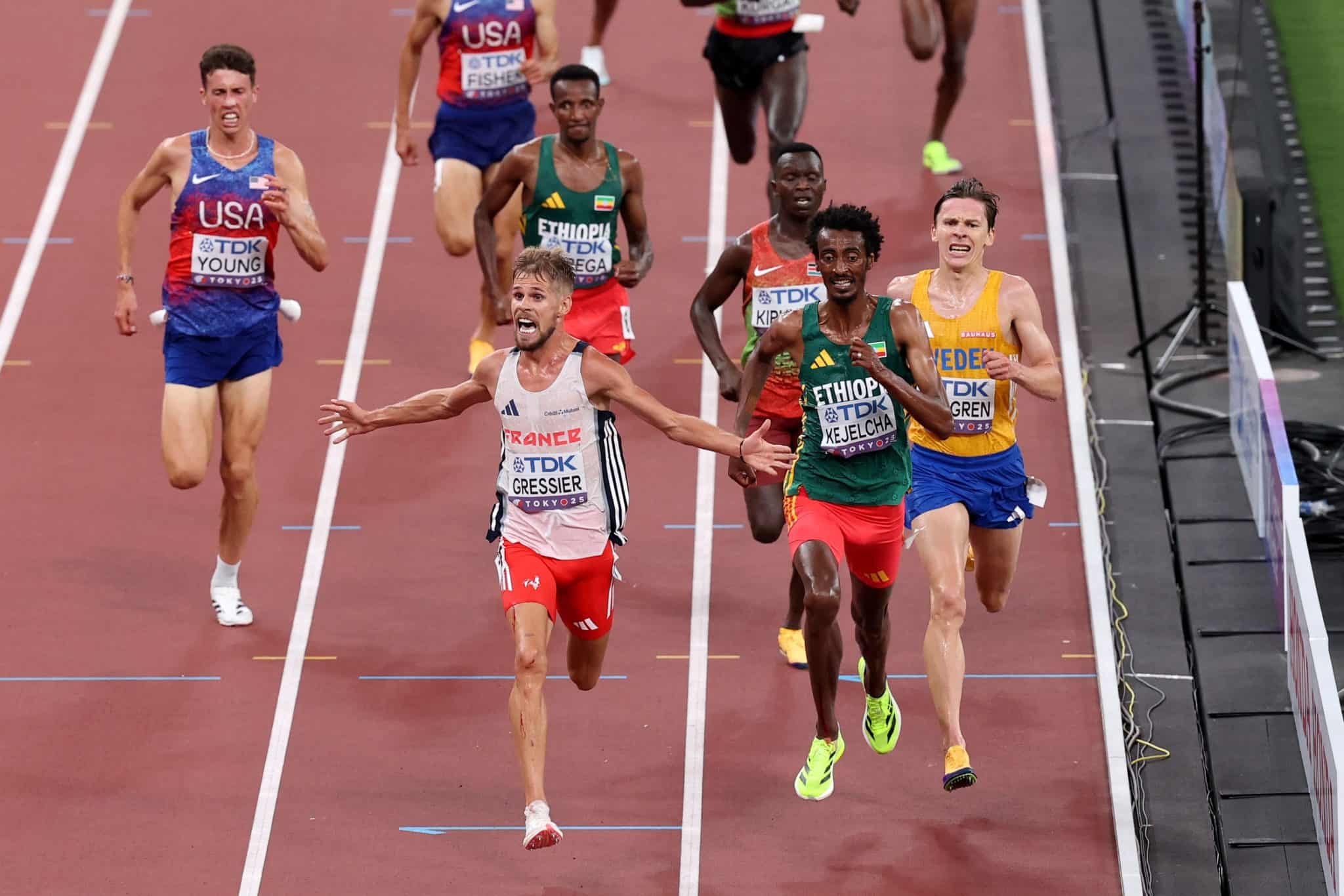 But there was so much more. The dual Kenyan 800 victories – Emmanuel Wanyonyi and Lilian Odira – Jimmy Gressier’s amazing win in the men’s 10,000, Beatrice Chebet’s imperious double in the women’s distances, defeating Faith Kipyegon in the 5000, Ryan Crouser’s return from a year of injury to retain his shot put title. Geordie Beamish’s dramatic win over Soufiane El Bakkali in the men’s steeple, Cole Hocker coming back from his DQ in the 1500 semis to win the 5000.