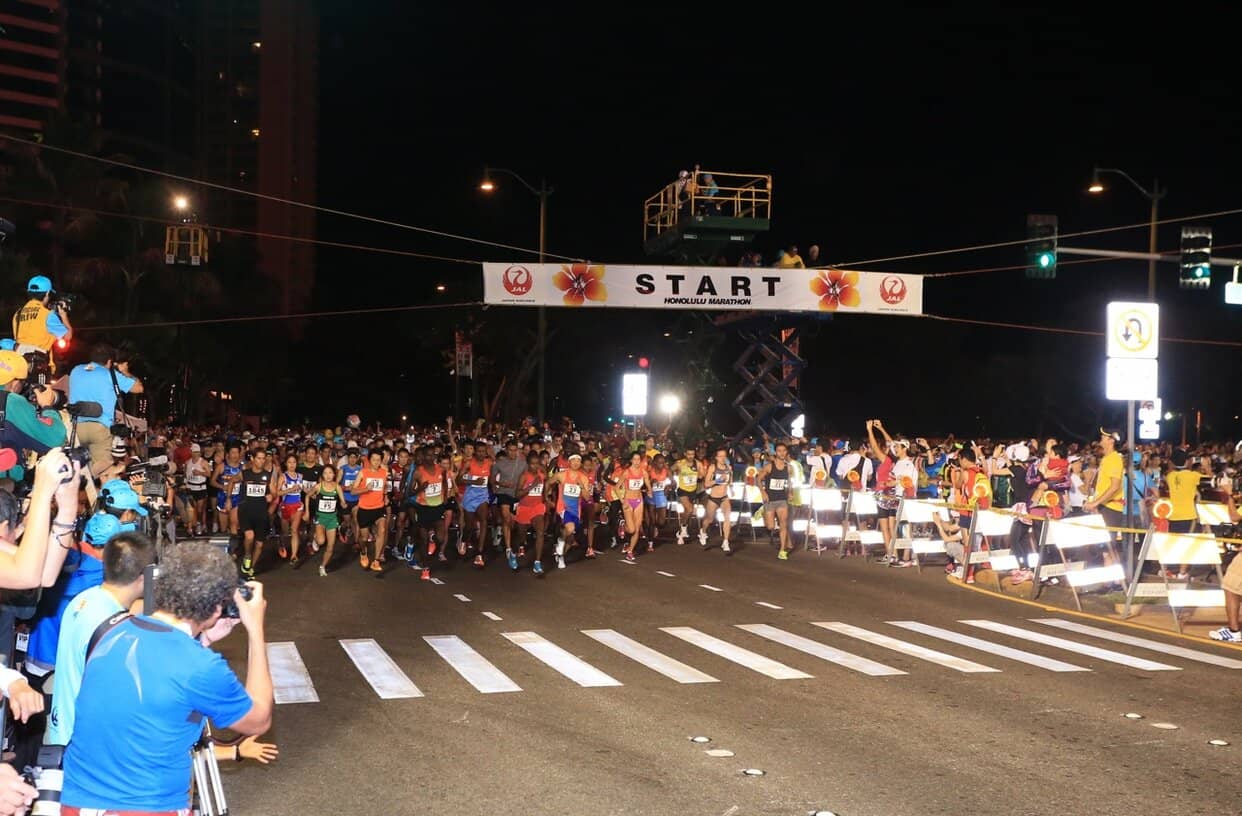 HONOLULU (11-Dec) — Before the sun rises tomorrow, more than 22,000 runners will begin their 42.195 kilometer journey towards Kapiolani Park as part of the 43rd Honolulu Marathon. Routinely one of the top five largest marathons in the United States each year, the Honolulu Marathon has established itself as a marquee event, boasting rich traditions both on the roads and in the surrounding community. As the sun comes up off of Waikiki Beach on Sunday morning, the winners will streak down Diamond Head Road bound for Kapiolani Park and its decorated finish line. In anticipation of the event, Race Results Weekly has highlighted ten storylines to watch out for tomorrow: