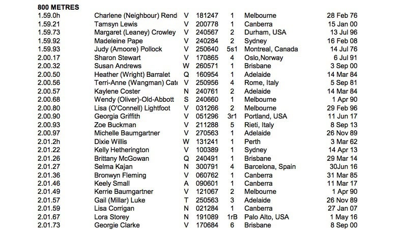The fact that it has stood for over 30 years highlights just how impressive an achievement running that time is. I am lucky enough to have met Charlene who has been a really great support, and a wonderful source of inspiration for me. It would obviously be awesome to run under 1:59, and like all other athletes would love to hold an Australian record, but my main focus at the moment is to keep trying to run PB’s.